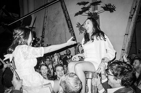 I had only been to one queer wedding in my life, and that was just a few months before our own. I’ve done a seemingly endless amount of writing, singing, talking, processing my queer pain and journey to self acceptance that I kind of thought by the time I got engaged that the fears and pain were behind me. But having a day where people from every corner of my life came out to actively support mine and Sarah’s love felt life changing. New level of happiness unlocked. It felt like a balm on old wounds I didn’t know still festered. The people who matter most showed up for me, for us, and I eagerly soaked up all the ways people told and showed us they supported our love that day.